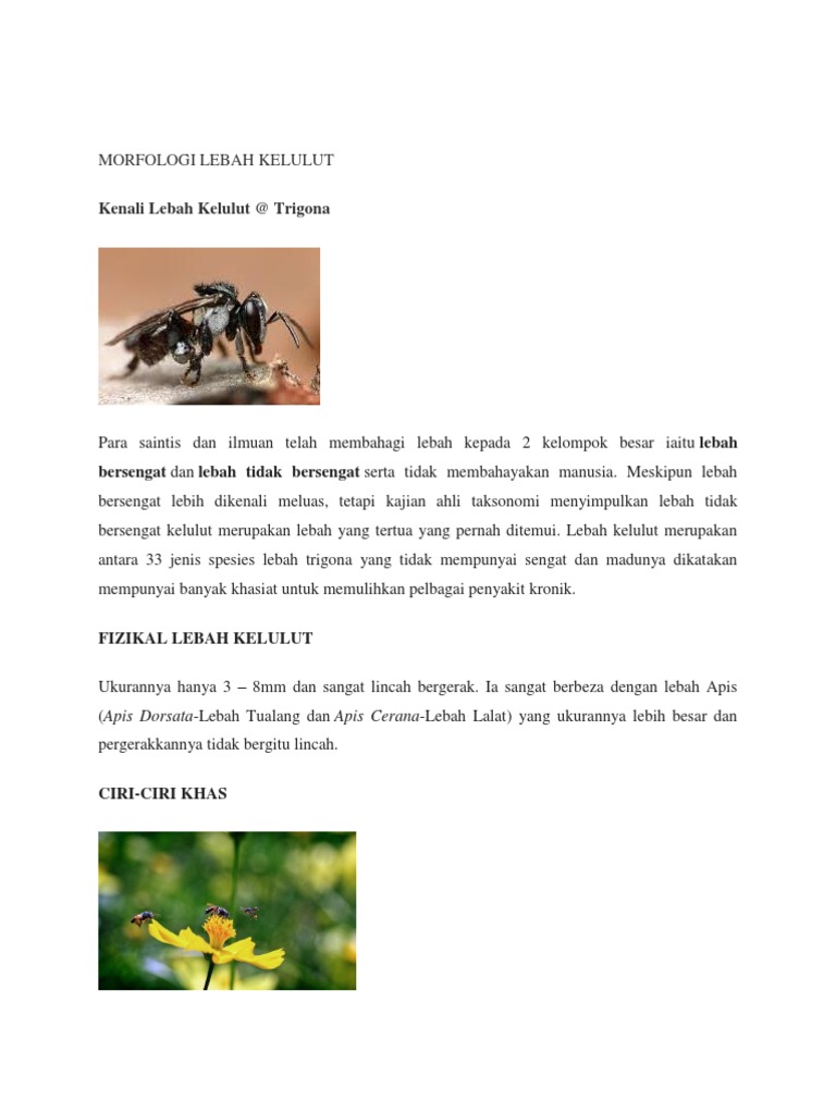 Selain mudah untuk dibudidayakan, madu kelulut ternyata memiliki nilai ekonomi yang cukup tinggi. Lebah merupakan sejenis serangga terbang sosial yang hidup berkelompok dan lebih dikenali kerana peranan mereka dalam mengahwinkan bunga, menghasilkan madu dan juga lilin lebah. Pengenalan dipanggil juga dengan nama klanceng dan stingless bee (lebah tanpa sengat) dua genis (genus) yang biasa dilihat: Pengenalan riza atiq abdullah bin o.k. Lebah kelulut (meliponini) and trigona are bee species that do not sting, making the insect easier to handle than other honey bees.