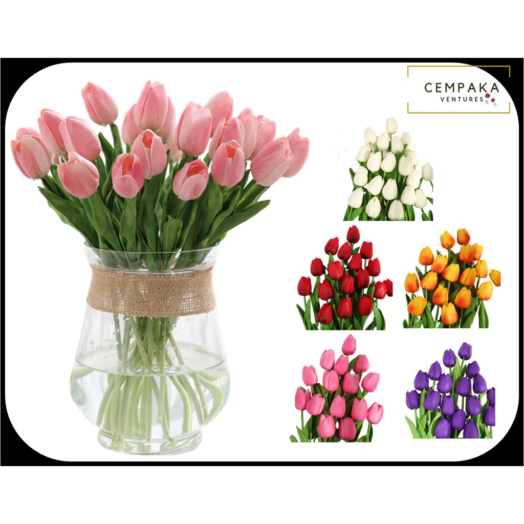 Artificial flower tulip latex bunga palsu plastik artifisial dekorasi pajangan hiasan rumah kantor. Bunga tulip berbentuk cangkir, berwarna cerah dan anggun dengan tangkai hijau yang panjang. Bunga tulip putih seringkali di gunakan sebagai ungkapan permohonan maaf kepada seseorang dengan tulus atau untuk menunjukkan rasa simpati. Miliaran bunga tulip paling indah dibudidayakan di seluruh dunia dimana mayoritas diekspor dari belanda. Pembayaran mudah, pengiriman cepat & bisa cicil 0%. Mereka juga yang mengenalkan cara merangkai bunga itu sebagai hiasan di rumah. Gambar bunga tulip diatas menunjukkan bahwa karangan bunga tulip juga cocok dan bagus untuk hiasan pemanis didalam interior rumah agar terlihat indah sejuk alami. Beli produk bunga tulip berkualitas dengan harga murah dari berbagai pelapak di indonesia. Bunga tulip bisa dibuat dari kertas origami. Memang sangat teruja melihat keindahan bunga tulip yang cantik berwarna warni. Salah satunya adalah tulip merah yang bermanfaat untuk pernikahan karena memiliki. Bunga tulip, yang bisa dimakan, secara luas populer sebagai elemen dominan kebun bunga. Bunga tulip merupakan hiasan yang indah untuk semua taman bunga atau pun halaman rumput.