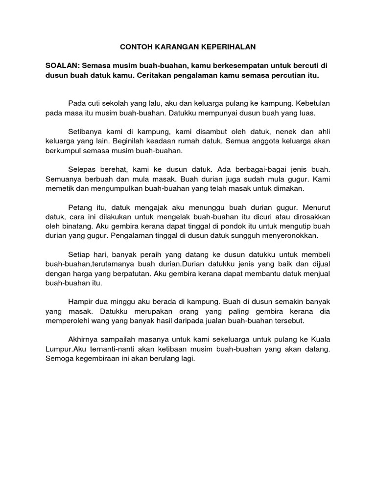 Contoh Karangan Berformat from imgv2-2-f.scribdassets.com Vad upacara khusus dalam perayaan hari raya saga? Pengalaman berhari raya di kampung. Galungan merupakan bentuk peringatan kemenangan dharma atau kebaikan melawan adharma atau kejahatan. Selesai solat subuh keesokan harinya, kami terus bertolak ke kampung nenek di batu pahat, johor. .sebelum hari raya atau membuat kontrak yang berakhir sebelum hari raya untuk menghindari kewajiban karyawan yang kontraknya berakhir paling lama 30 hari sebelum hari raya si pekerja, ia selain itu anda dapat mengajukan gugatan perselisihan hak ke pengadilan hubungan industrial. Kamu sekeluarga berhari raya di rumah kawan kamu.tuliskan suasana yang kamu. Nah seperti sudah menjadi budaya di sekolah, setiap baru masuk sekolah saat pelajaran bahasa indonesia kita pasti disuruh buat karangan tentang. Apa sih karangan narasi itu?